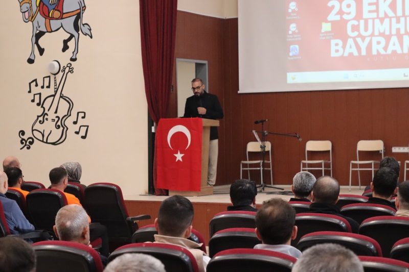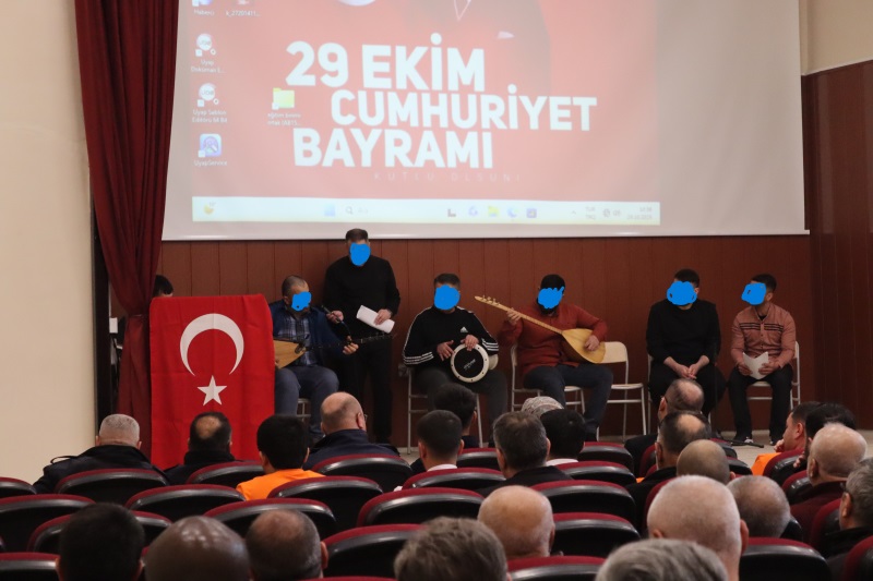 Kurum Personelinin sunumunu yaptığı program saygı duruşu ve İstiklal Marşı’nın okunması ile başladı. Kurum Öğretmenimiz Ömer TÜRK’ün günün anlam ve önemini belirten konuşmasıyla devam etti. Kurum Öğretmenimizin"… İnanıyorum ki aziz milletimizin her bir ferdi, milletimizin küllerinden yeniden doğduğu bu özel günü büyük bir coşku ile idrak etmekte; en samimi duygularla kutlamaktadır. Sözlerimi Atatürk'ün bir sözü ile bitirmek istiyorum. "Cumhuriyeti biz kurduk, onu yaşatacak ve yükseltecek olan sizlersiniz" konuşması ile devam etti. Eğitim ve Öğretim Servisi tarafından kurumda bulunan hükümlü ve tutuklulardan oluşturduğu müzik ekibi tarafından Müzik Dinletisi ile büyük bir coşku ile kutlandı ve program, Cumhuriyet Belgeseli gösterisinden sonra tamamlandı.